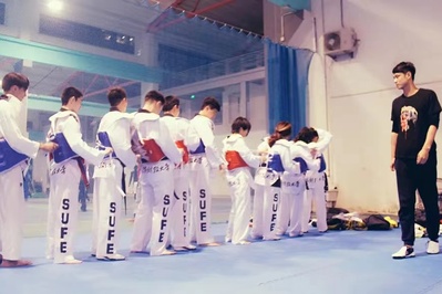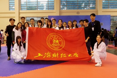 为了发挥更多“余热”,除了课堂授课,尹老师还担任了跆拳道社团的指导老师,从无到有组建了上财跆拳道校队,肩负着校队训练和带队比赛的任务。