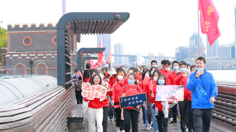 在长约2.5公里的徒步路上,7个方队整齐划一,上财师生神采奕奕、气宇轩昂,脸上洋溢着欢愉的笑容。一路上,大家有说有笑,尽情抒怀,有的步伐矫健,有的步调轻盈,不仅近距离感受了上海近代工业摇篮的独特魅力,更贯彻落实了大学校区、科技园区、公共社区——三区联动”和“学城、产城、创城——三城融合”的建设理念,展现了上财师生的朝气与风采。