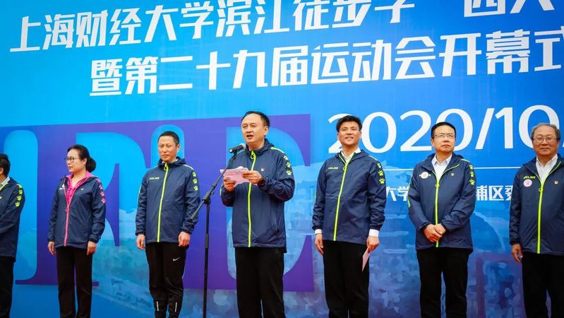 徒步活动在上海财经大学党委书记许涛、中共杨浦区委书记谢坚钢、杨浦区人民政府副区长徐建华、上海财经大学副校长方华共同为运动员鸣号发令后正式启动。开幕式前,上海财经大学党委书记许涛接受教育电视台采访,许涛书记在采访中提到美丽的滨江是近代工业的摇篮、人民城市建设的典范,上财师生用脚步丈量人民的城市,用行动践行初心和使命,希望上财学子成为德智体美劳全面发展的社会主义建设者和接班人,为实现中华民族伟大复兴的中国梦做出上财人应有的贡献!