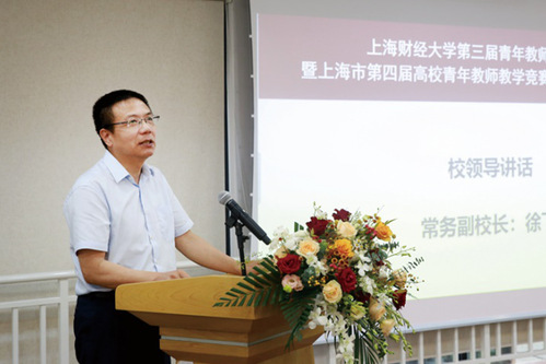 上海财经大学青年教师参加第四届上海高校青年教师教学竞赛自始至终得到了学校领导的高度重视和关心。我校党委书记许涛、校长蒋传海、常务副校长徐飞出席第四届上海高校青年教师教学竞赛集训营开营动员会。校领导们鼓励参赛选手积极备战,迎接挑战,享受比赛,全身心投入比赛。常务副校长徐飞全程参与了指导。