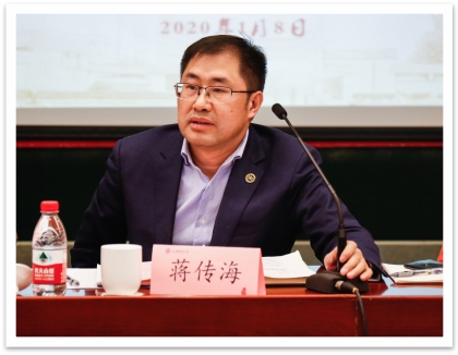 蒋传海校长代表学校首先向各位新进教职员工加盟上海财经大学表示热烈欢迎,新进教职工是学校教学、科研以及管理服务工作的新生力量,学校高度重视新进教职工的教育、引导及服务工作。学校近年来保持战略定力、实施内涵发展,在学科建设、师资队伍建设、服务社会经济发展能力、现代一流大学制度建设等方面均取得瞩目成绩。随后,他向新进教职工介绍学校新百年的发展愿景,指出学校面临的压力与挑战,并对新进教职工提出了新的希望和要求。面向新百年,新起点、新征程,坚持社会主义办学方向,坚持立德树人,坚持放眼世界,坚持敢闯善创,坚持内涵发展,坚持追求卓越,他希望所有新进教职员工能够珍惜学校来之不易的发展环境,不忘初心,秉承校训,齐心协力,为建设鲜明财经特色世界一流大学贡献自己的力量。最后,蒋传海校长代表全校师生为预祝大家新春快乐!