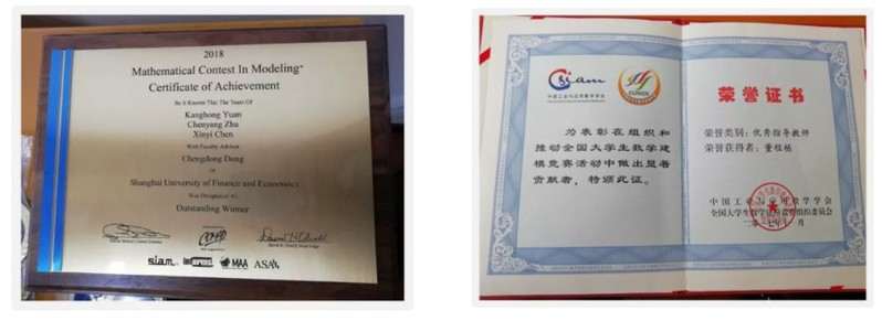 在课堂教学以外,董程栋老师从2003年开始指导上海财经大学的数模竞赛,数学建模指导老师的身份已经伴随他将近17个年头。董程栋老师与团队同事一起带出了“全国大学生数学建模竞赛”一等奖12个、二等奖63个,“美国大学生数模竞赛”outstanding 2个、Finalist 3个,“全国研究生数学建模竞赛”一等奖9个、二等奖84个。董程栋老师也因此荣获2005年“上海赛区优秀教练员”和2017年“全国优秀指导教师”的称号。