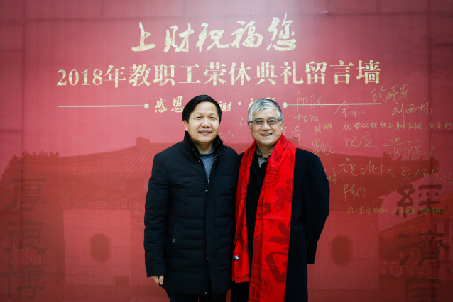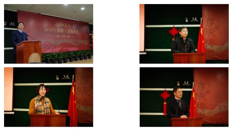 他表示,新百年新征程,学校将全面加强党的领导,扎根中国大地,坚持社会主义办学方向,为早日建成国际知名具有鲜明财经特色的高水平研究型大学努力奋斗。上财人将一如既往遵循百年发展历史,传承改革开放四十年来的宝贵经验,在新时代将前辈们的优良传统和上财精神发扬光大。希望荣休教职工能够一如既往的关心和支持学校事业发展,为学校的改革、创新和发展建言献策,助力上财发展新篇章。最后他代表全体师生送上最真挚的新年祝福,祝愿各位荣休教职工福寿安康、生活幸福!
