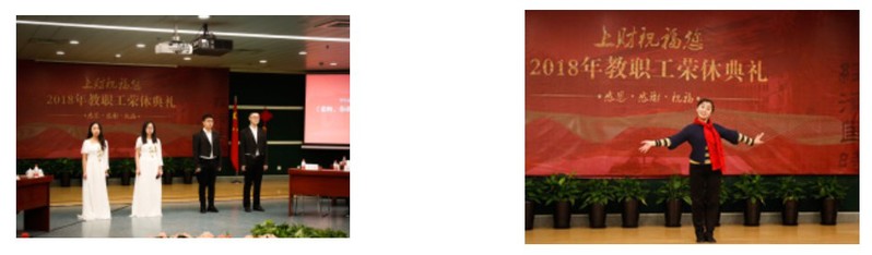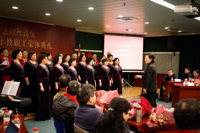 典礼上,学生合唱团深情演唱《老师,你我共同的名称》,送上了学生对荣休教职工的感恩与祝福;老教师艺术团带来合唱《闪亮的日子》、《让世界赞美你》,林珏老师带来舞蹈《又见山里红》,表达了对2018年荣休教职工加入离退休大家庭的热烈欢迎。