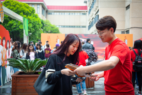 为纪念五四运动一百周年和上海财经大学法学会成立三十周年,2019年4月28日中午,上海财经大学法学院、外国语学院、国际文化交流学院依托二级分党校,于绿叶步行街共同举办法文化红色探寻活动展。上海财经大学党委书记许涛、副书记朱鸣雄、党委常委、组织部部长刘庆生、党委常委、宣传部部长章益国、党委常委、统战部部长周杰普、学生处处长倪志兴、校团委书记沈亦骏、外国语学院党总支书记蒋萍、国际文化交流学院党总支书记王玲以及法学院、外国语学院、国际文化交流学院的班主任教师和二级分党校全体学员共同参加了本次活动。法文化红色探寻系列活动作为杨浦区人文行走活动的一项内容,也得到了杨浦区学习办的大力支持,杨浦区学习办常务副主任王建平、党支部书记兼综合部部长陈向阳、活动部部长李瑾及项目部副部长洪礼珍出席了本次法文化红色探寻活动展。展示活动的启动仪式由法学院党委书记杨乐主持。