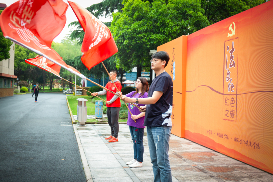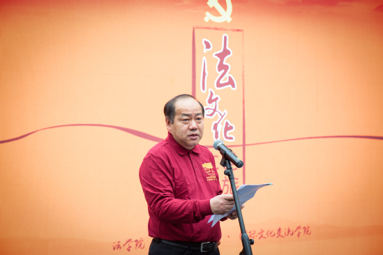 校党委副书记朱鸣雄发表讲话。2019年正值五四运动100周年,也是上海财经大学法学会成立30周年,在这特殊的年份里,法学院、外国语学院和国际文化交流学院的同学们与班主任老师一起走进中共一大会址、中华艺术宫《东京审判》巨幅画展、上海犹太难民纪念馆等15个红色景点,通过探寻中国革命与改革开放时期的发展历程,结合法学文化特色,在历史长河里找寻法律和法律人的故事,一次行走一堂微课,在历史中反思未来,在实践中探索理论,在行走中明确时代赋予的责任!同学们不仅加深了对上海红色文化的理解,也弘扬了法治精神。今天,我们在校园里组织红色法文化游园活动,既是对上海红色文化的一次具有特色的总结与展示,同时也在新时代里重新阐述了五四精神的内涵与意义。