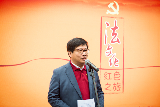 随后,王建平主任在现场介绍上海市“人文行走”活动项目。2017年杨浦区、普陀区和宝山区在市教委的指导下首批试点人文行走项目,通过引导学生寻找、发现、参观、记录、体验、分享等一系列学习过程去感受、感知、触摸上海知名文化地标和历史遗迹。后来该项目得到了上海市委的重视,并被确认为上海市重点项目。本次法文化红色之旅是人文景观与自然景观的结合,也是红色文化、海派文化和法文化的结合。本次活动将行走结合到课程学习当中,与“人文行走”活动倡导的从课上学习、网络学习、团队学习到体验学习的发展路径一脉相承。王主任表示未来会进一步为后续活动、行走项目的广度与深度拓展提供服务和帮助。