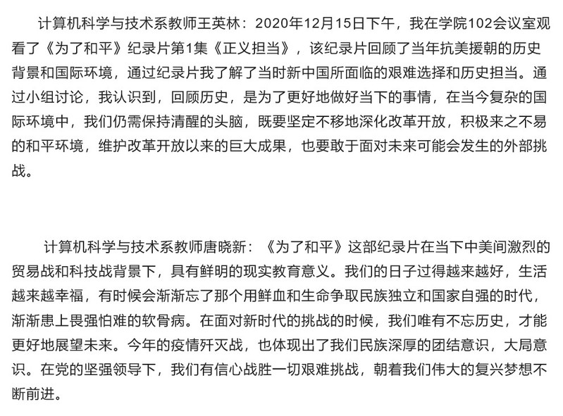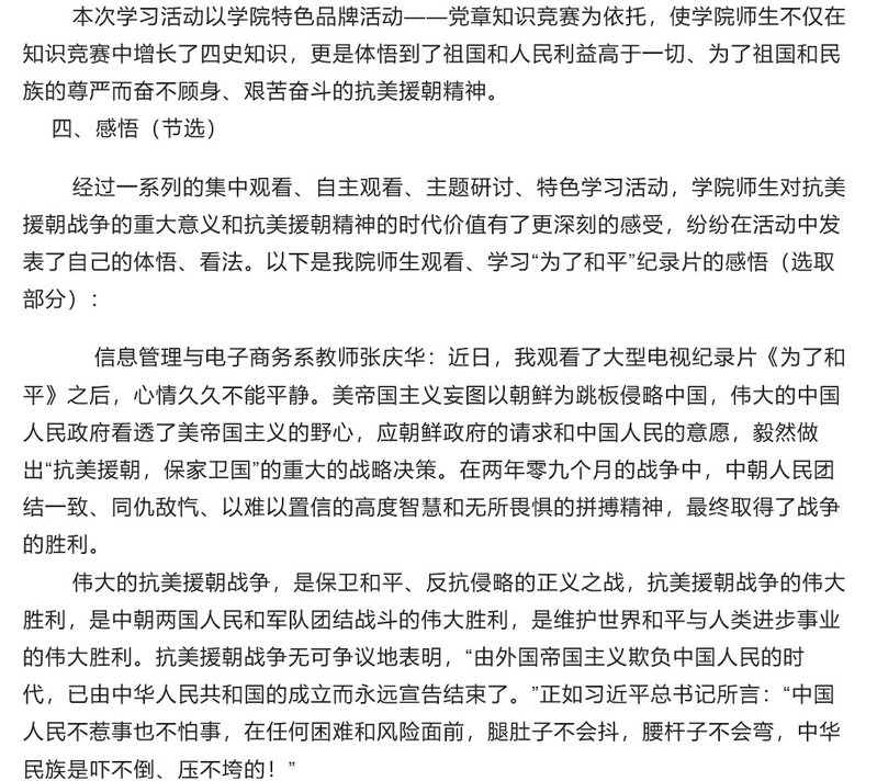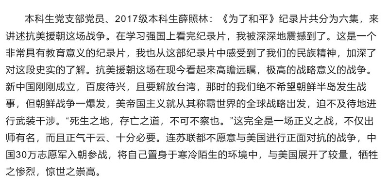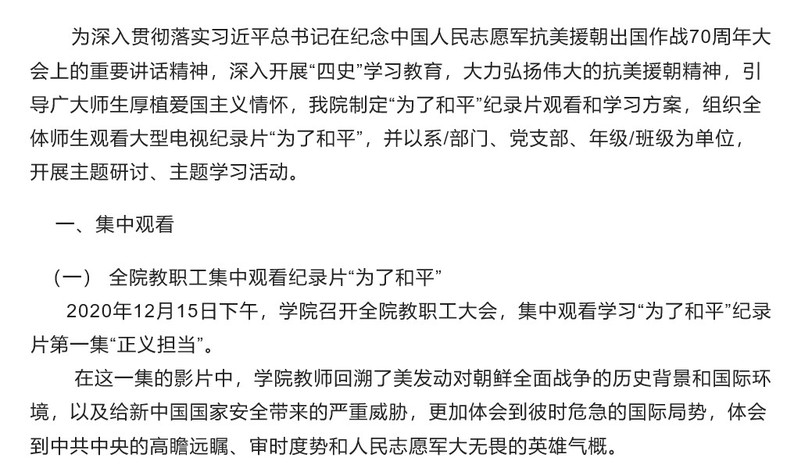 信息管理与工程学院开展“为了和平”纪录片集中观看和学习研讨活动