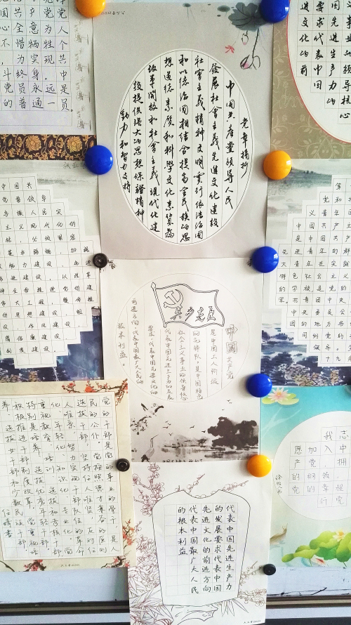 2016年6月,外国语学院党总支在全院师生党员中开展了“党在我心中——外国语学院摘抄党章书法比赛”。抄党章,明心志;练书法,悟真知。本次活动将二者结合起来,让参与者重温党的章程和书写的美好,将各位党员的党章学习成果以书法艺术形式展现出来。