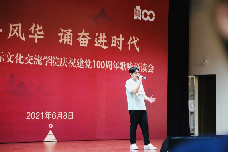 一直以来,学院重视国际学生人才培养,讲好中国故事,传递好中国声音。当日,来华留学生也参与到歌咏诵读会中,传递青春正能量。来自泰国的林凯云和韩国的白承桓用《追梦赤子心》和《最初的梦想》表达了追梦中国的信念;学院学生合唱团再次唱响建党百年原创献礼歌曲《彼岸的花》,用温暖的歌声传递“大道不孤,四海一家”的人类命运共同体理念。