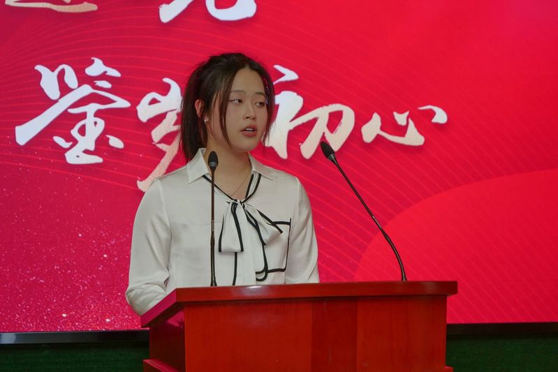 21级会计学院陈言同学作为学生代表发言,她讲述了学校老师对自己成长过程中的悉心指导和真心关怀,表示老师们的谆谆教导将使学生们有信心以勇气和毅力面对未来的困难,以经济匡时为己任,努力成为新时代经世济国之才。