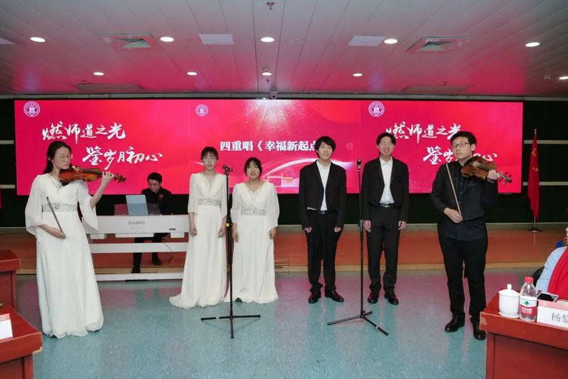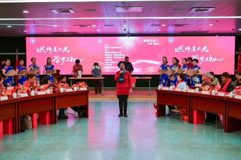荣休典礼在学生合唱团奏唱的《幸福新起点》暖场歌声中拉开序幕。